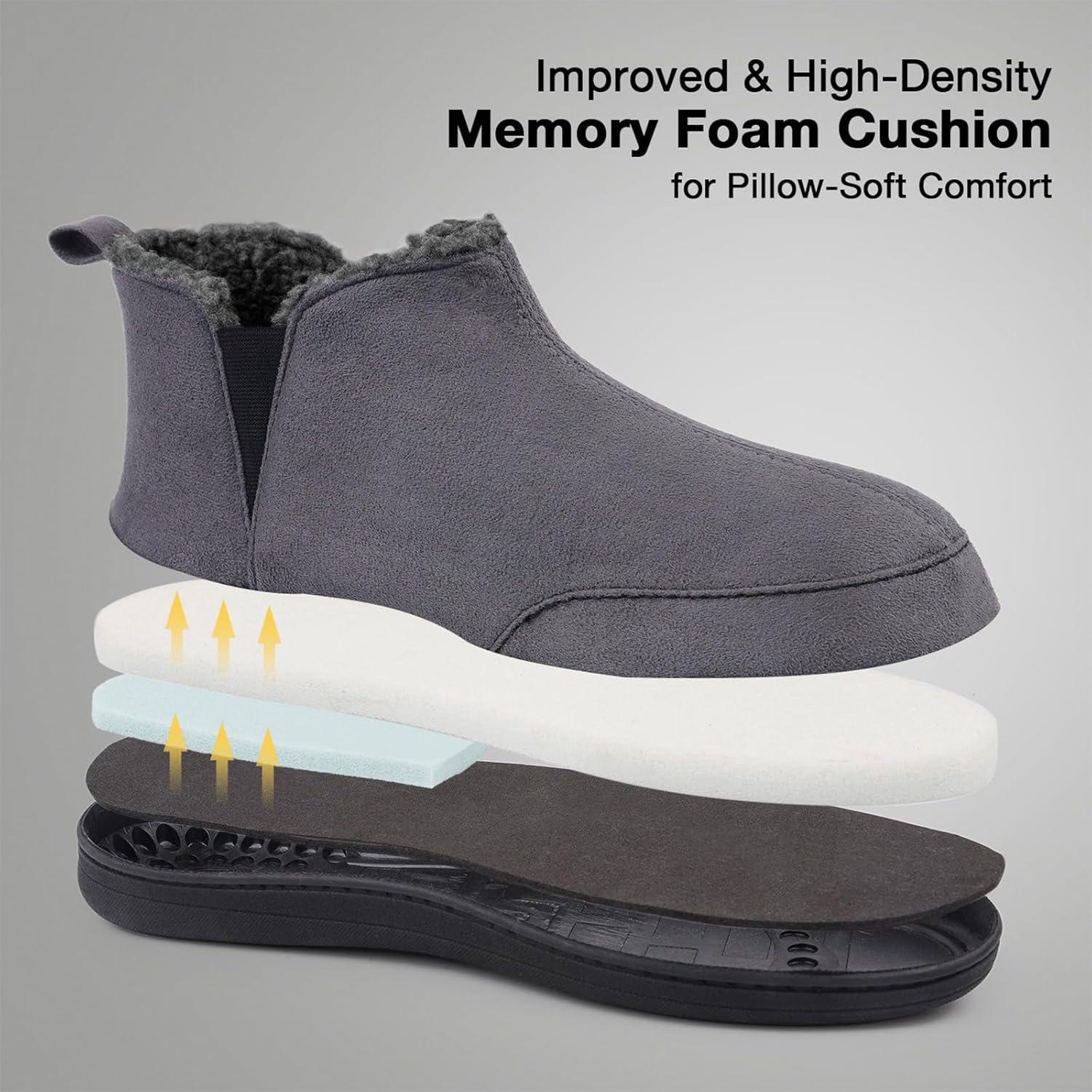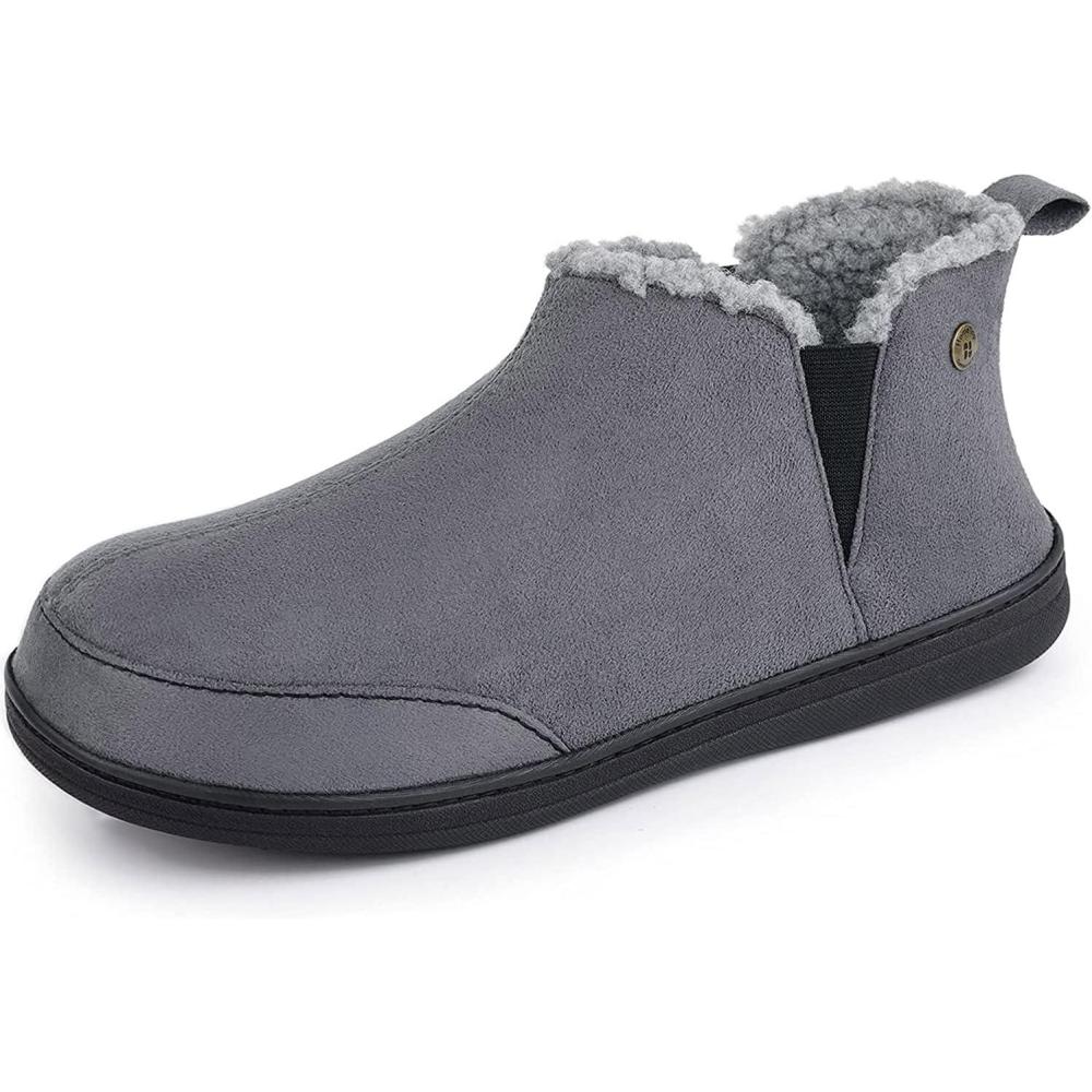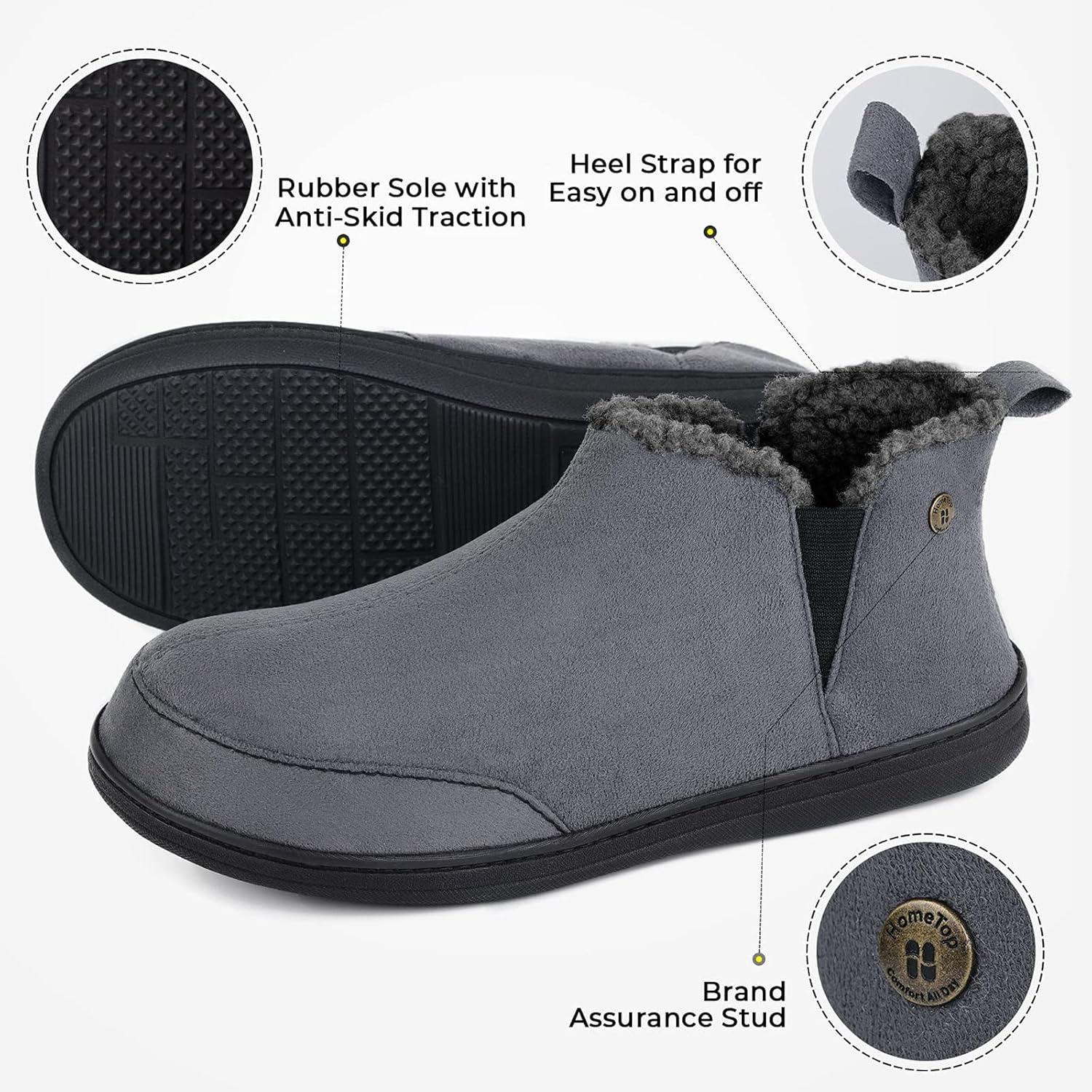 HomeTop Men’s Bootie Slippers Comfy Warm Soft Non-slip Indoor Memory Foam House Shoes with Elastic Gores(Dark Gray)