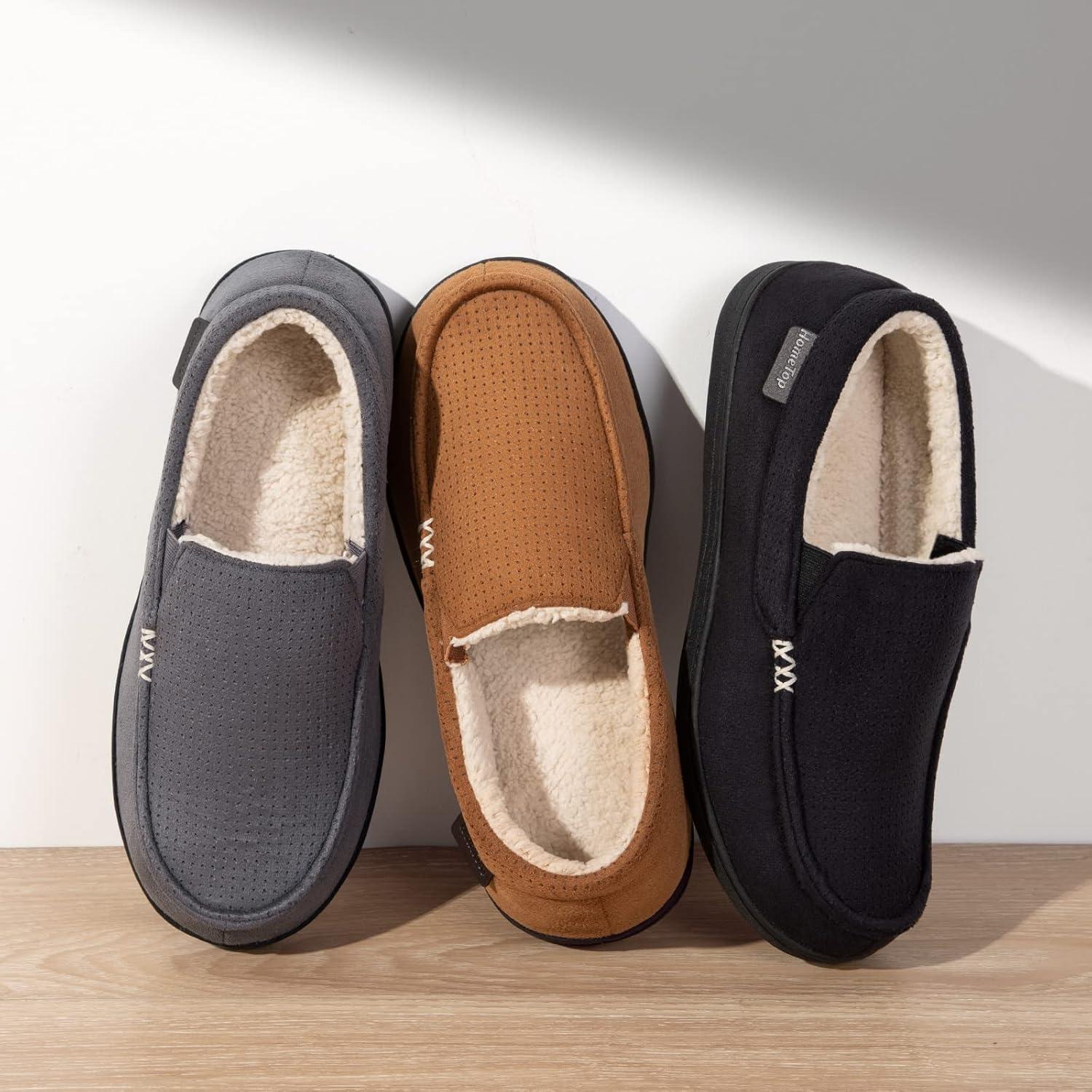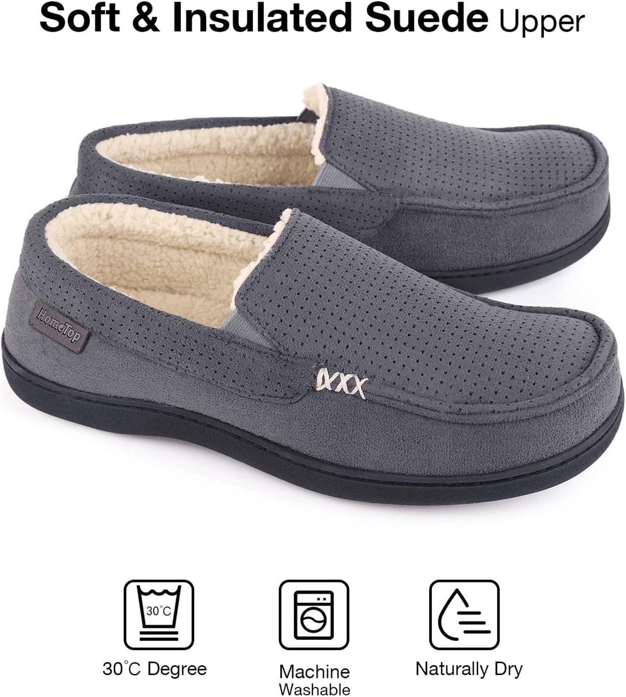 HomeTop Men’s Classic Moccasin Slippers Comfy Memory Foam Indoor House Shoes(Dark Gray)