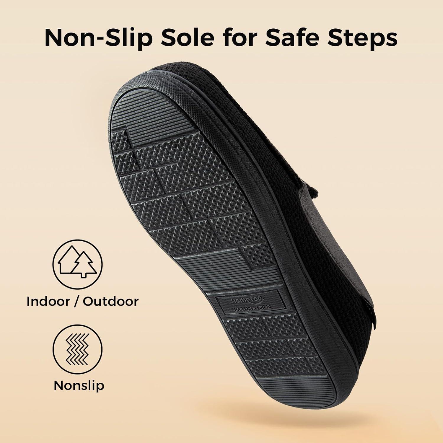 There is no place like HomeTop for your slippers needs.Your most satisfying slippers wearing experience begins here.HomeTop Idea: HomeTop stands behind our products. If you ever have a problem with your slippers, know that we are dedicated to making it right. HomeTop strives to indulge you and your feet with our designed ultra-cozy house slippers.Leave your busy world far behind in this soft cable knit jersey house slippers with durable silicone sole from HomeTop, which really keep your feet toasty all the time.Whether you wear them with your robe in the morning, or slide into them for tired feet in the evening, or just for all-day comfort around the house, these slippers will confirm good support, coziness to you in every minute.Features:- Ultra soft and comfy yarn knit offers an ideal choice for ultimate warmth and comfort.- Cozy and skin-friendly jersey lining keeps your feet cozy and relaxed in each step.- Supportive EVA cushion and multi-layered foam insole allows the slipper to fit the shape of your feet and creates the most comfortable custom fit.- Ultra Lightweight and flexible sole is durable to maintain your sturdy stride.- Easily cleanable by washing machine or hand.Ordering and Maintenance Tips:- If you find loose threads, do not pull and please cut it with scissors.