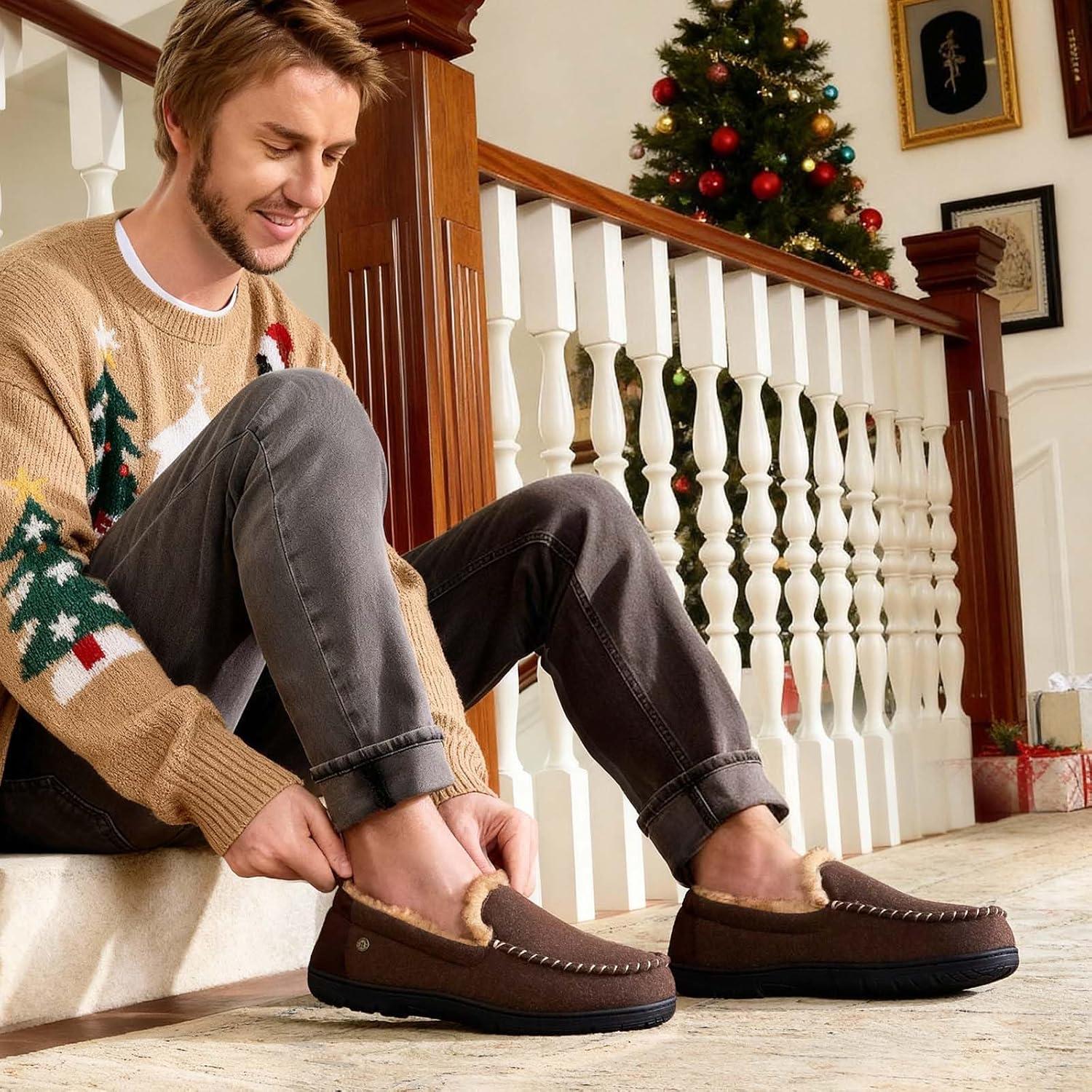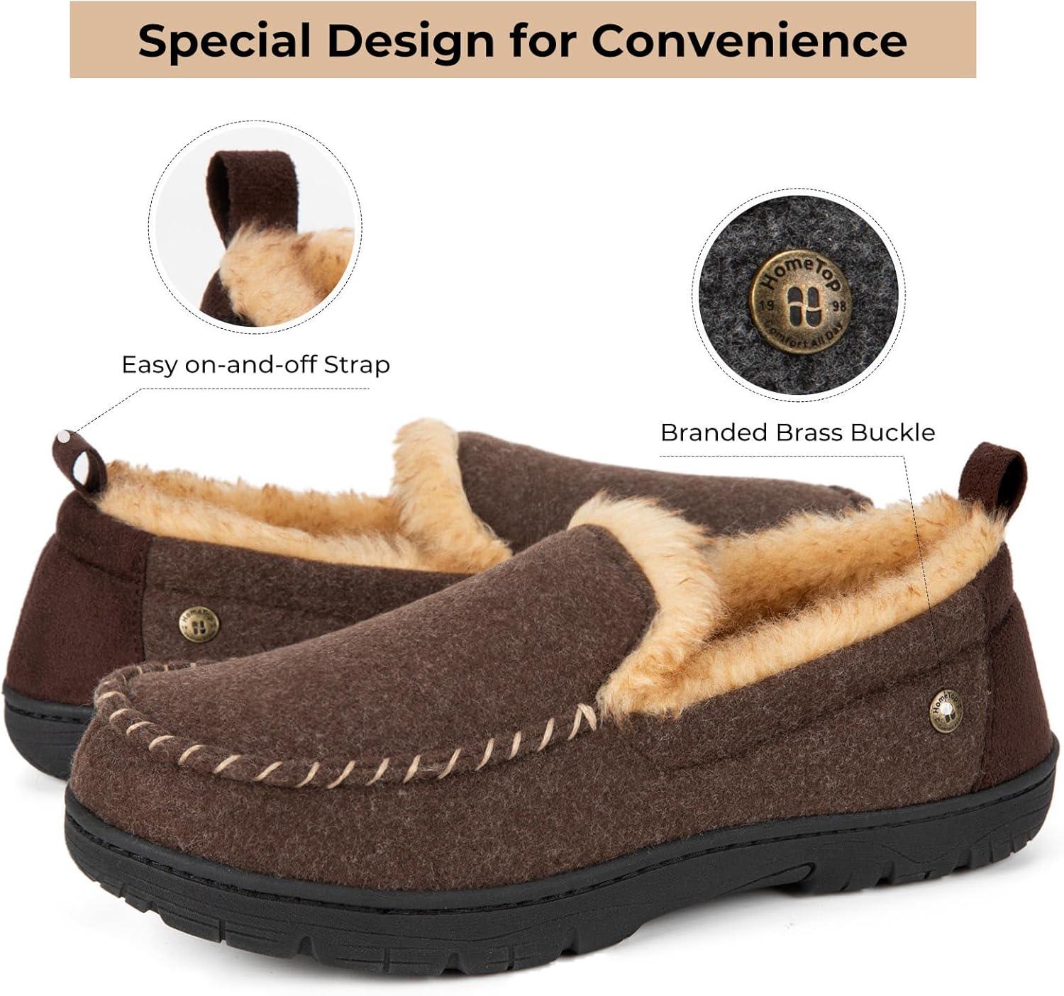 HomeTop Men’s Memory Foam Moccasin Slippers Indoor and Outdoor Warm Fuzzy Fleece House Shoes(Chocolate Brown)