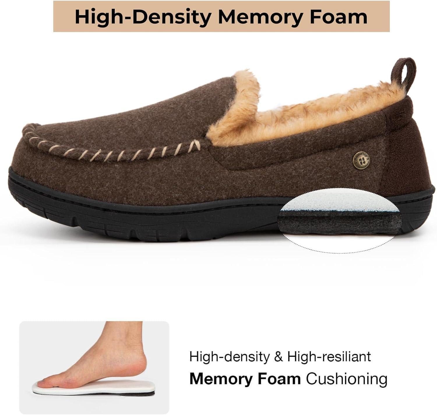 – These mens moccasin slippers are padded with high-density memory foam, providing stable arch support which is tailored to your feet for ultimate comfort and warmth.