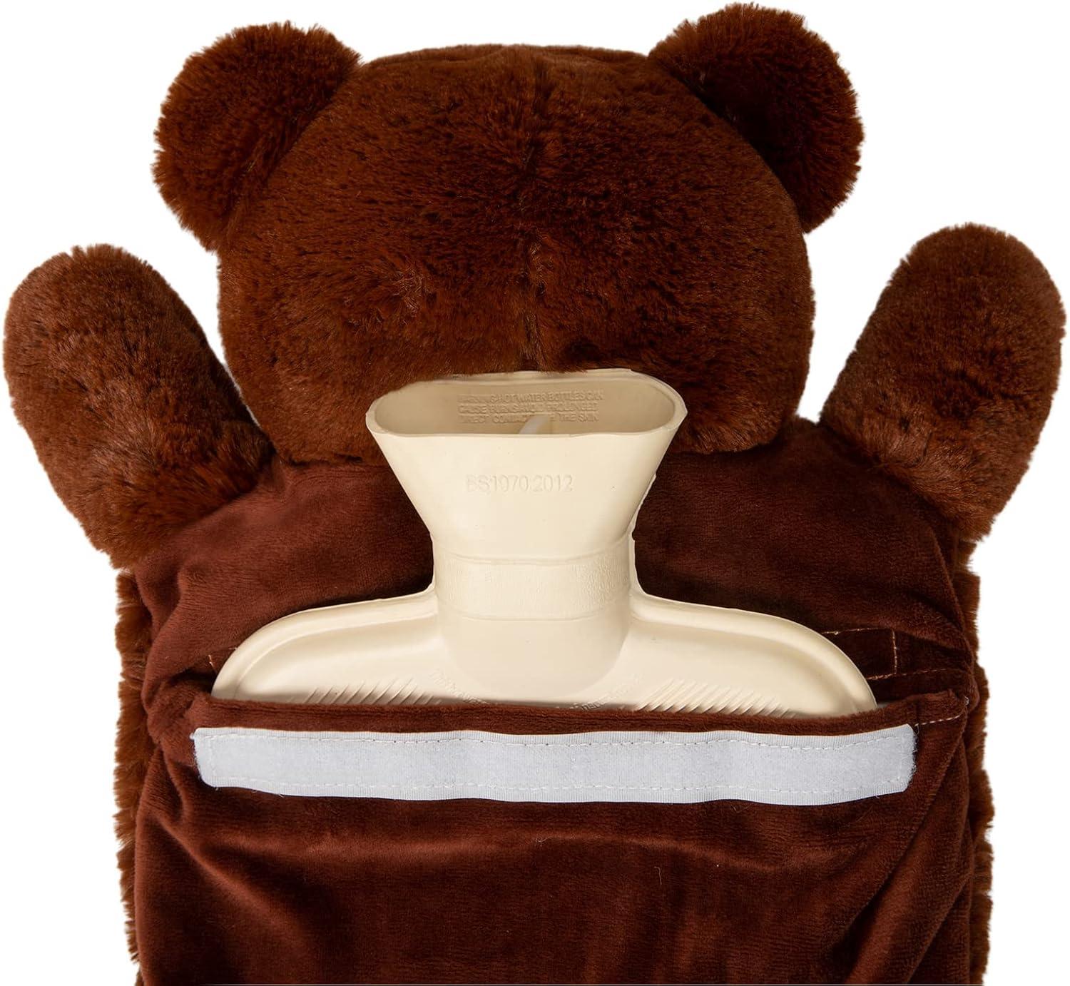 HomeTop Premium Classic Rubber Hot or Cold Water Bottle with Cute Stuffed Bear Cover(Tan)