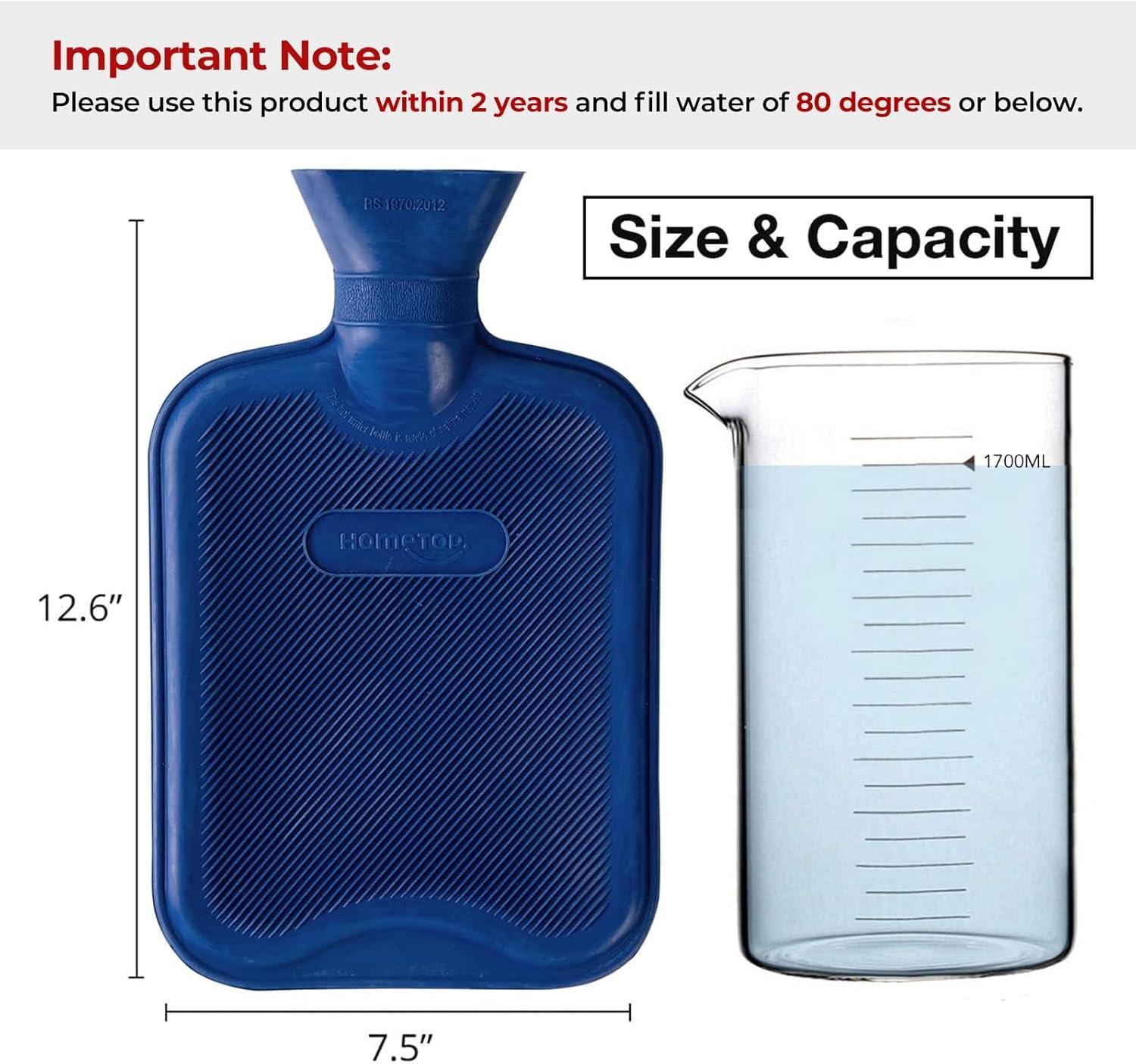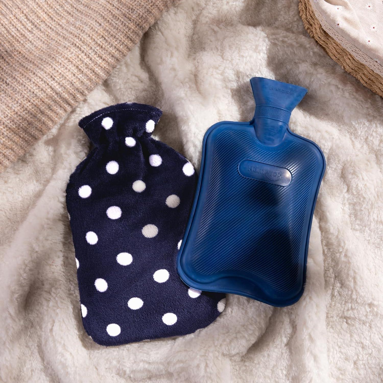 HomeTop Premium Classic Rubber Hot or Cold Water Bottle with Soft Fleece Cover(Navy Blue)