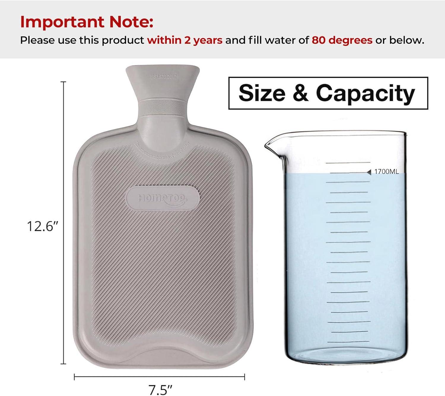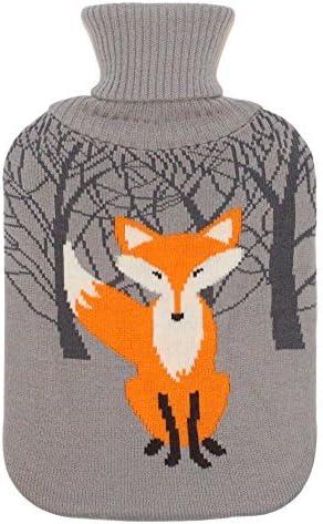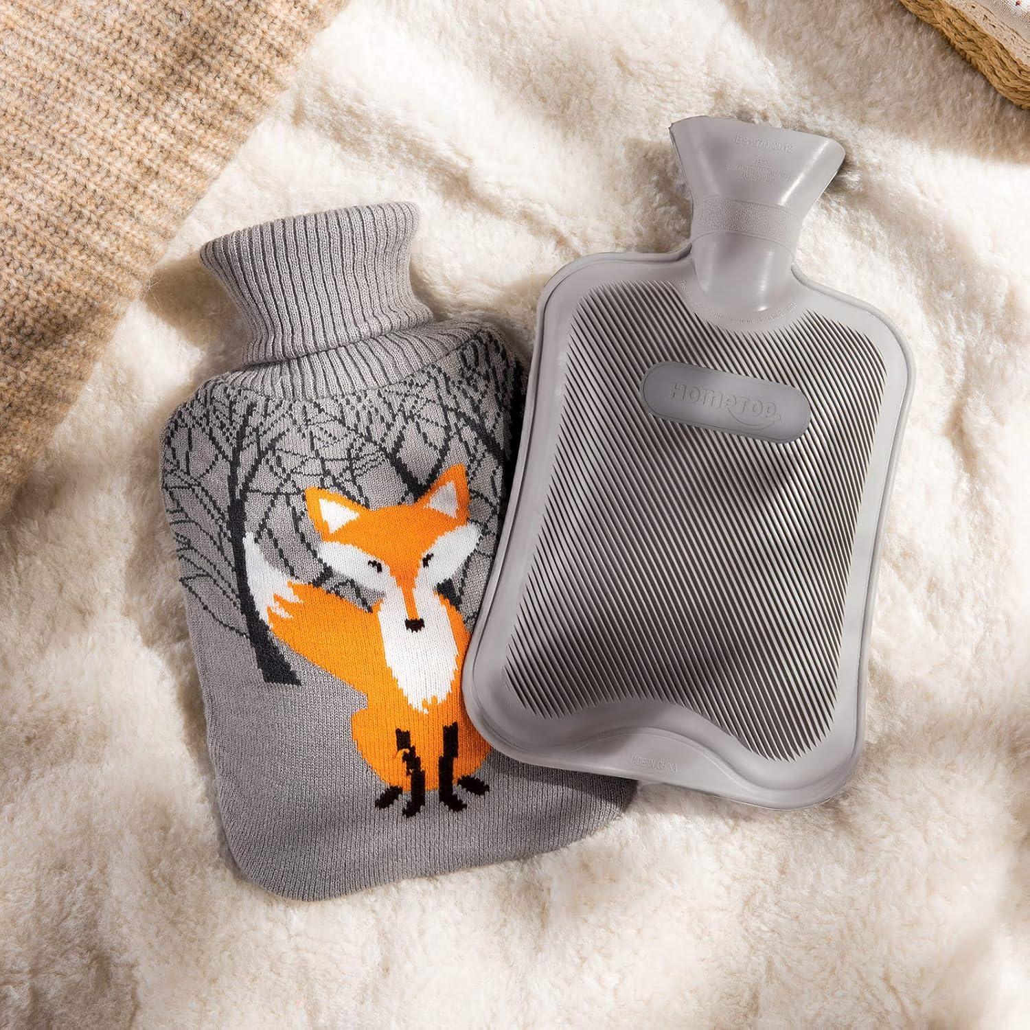 HomeTop Premium Classic Rubber Hot Water Bottle with Cute Fox Knit Cover(Gray)