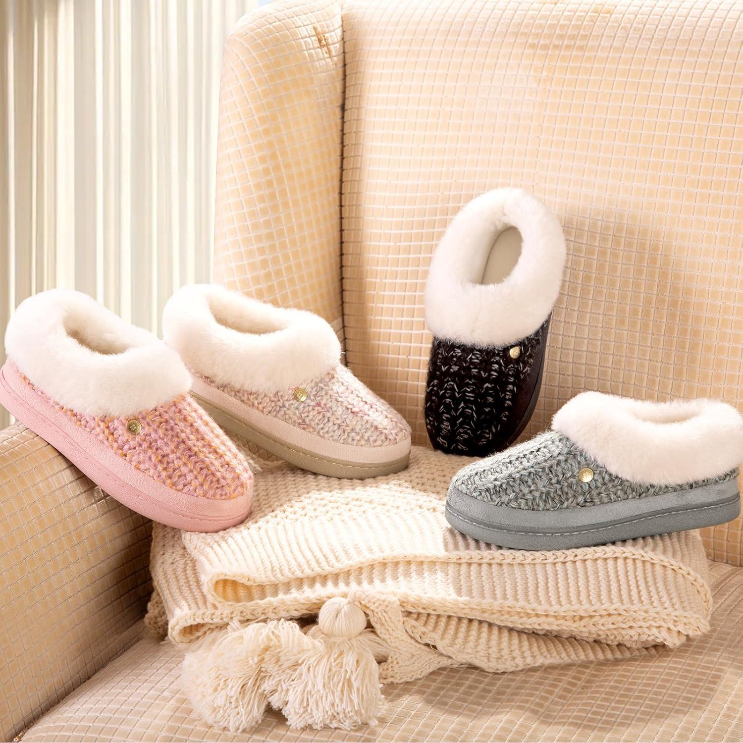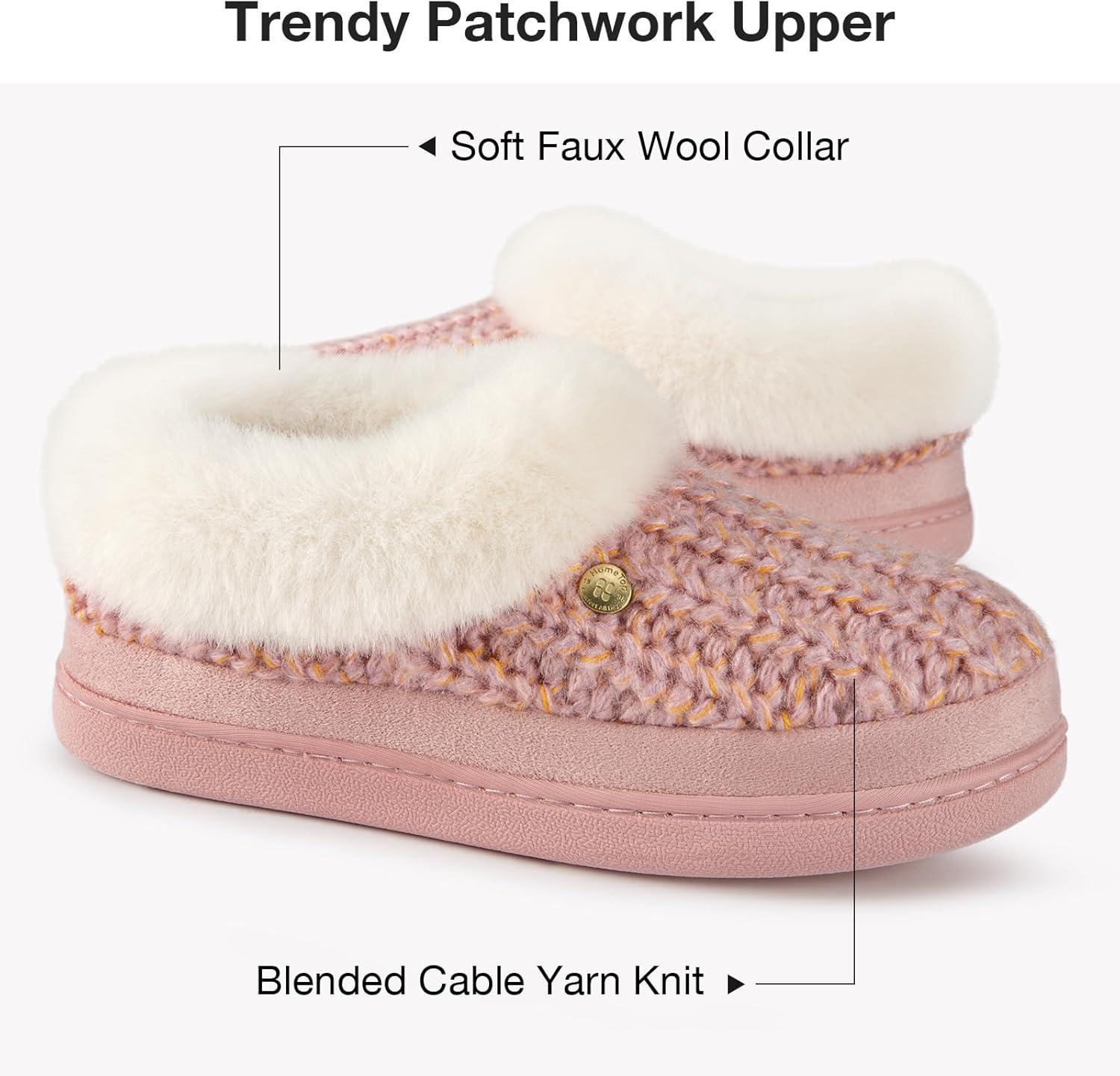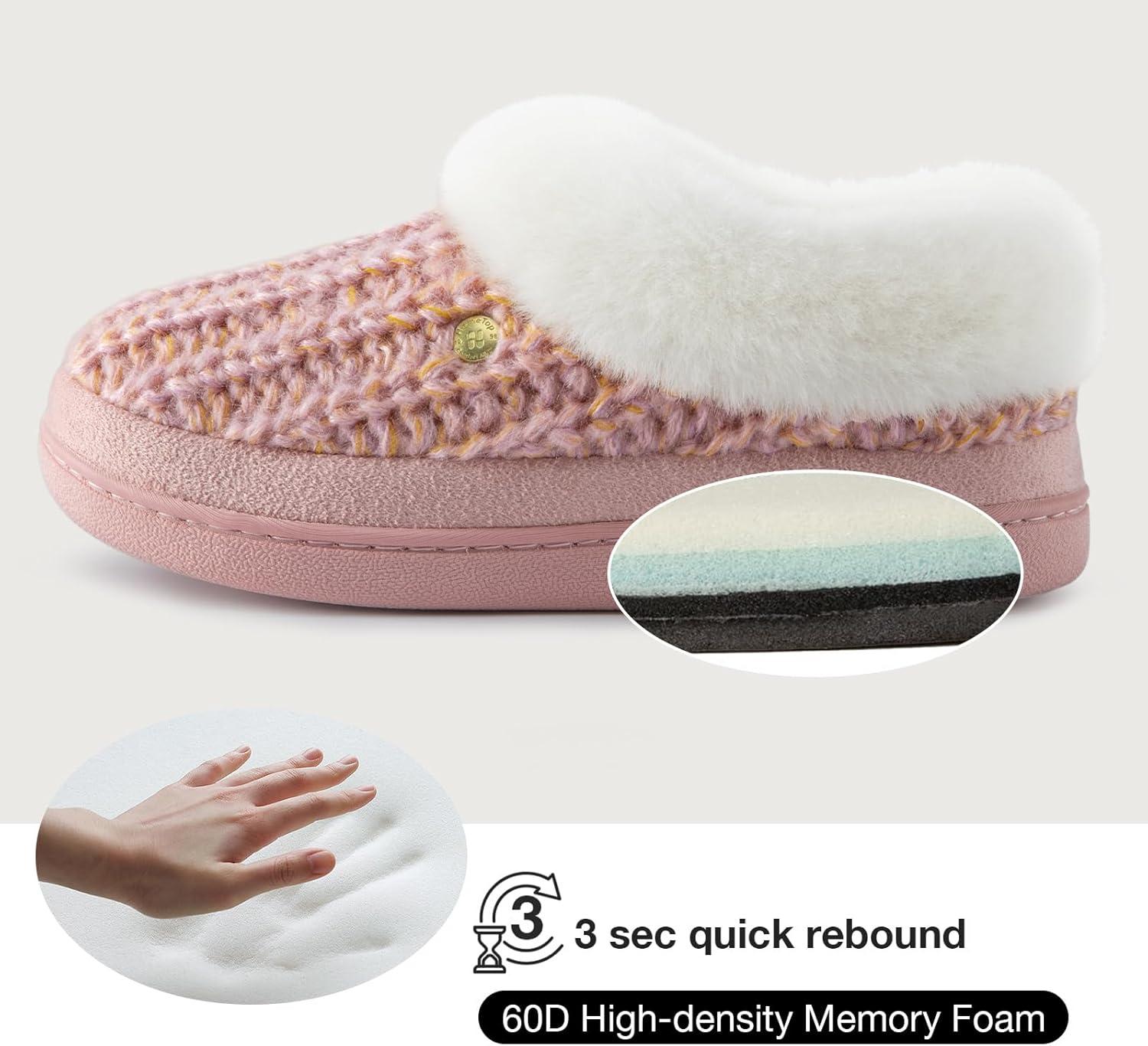 HomeTop Women’s Bootie Slippers Warm Soft Memory Foam Non-slip Indoor House Shoes with Fuzzy Collar(Gentle Pink)