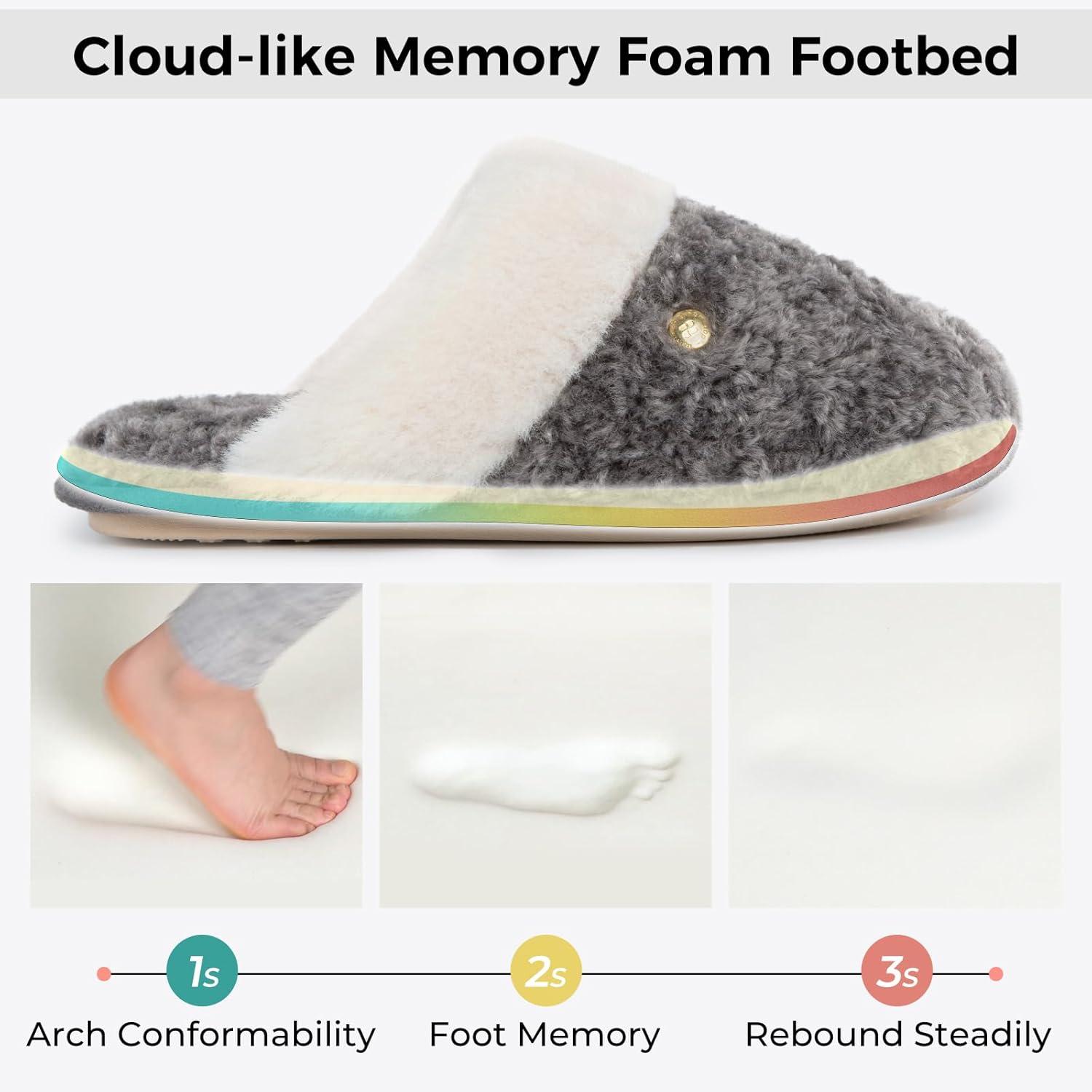 HomeTop Women’s Cute Fuzzy Memory Foam Scuff Slippers Comfy Bedroom Lightweight Indoor House Shoes with Luxury Fluffy Collar(Grey)