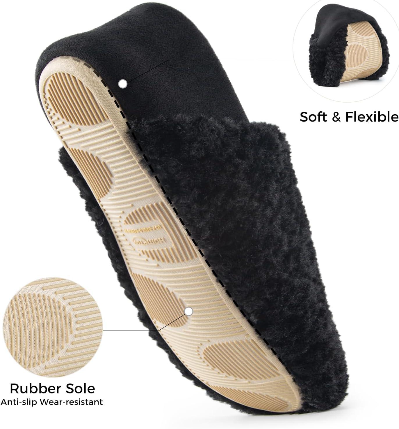 HomeTop Women’s Plush Slippers with Collapsible Microsuede Heel Indoor House Shoes(Matte Black)